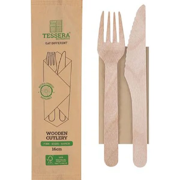 Wooden Cutlery Set FSC®16cm knife-fork-paper napkin