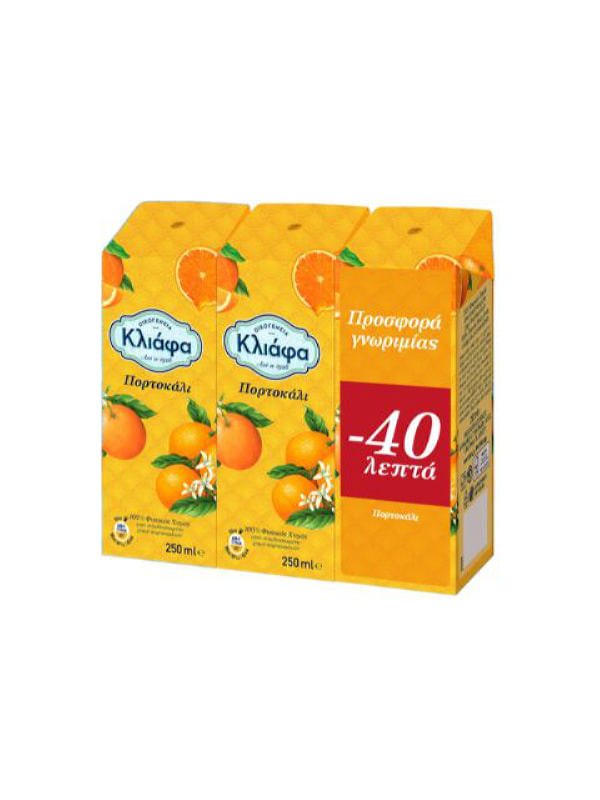 ΚΛΙΑΦΑ χυμός φυσικό πορτοκάλι (-0.40)3Χ250ml.
